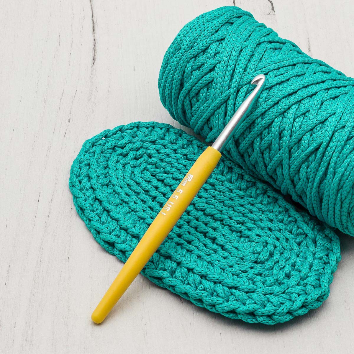 Вязальный крючок Prym SOFT изготовлен из практичного, легкого и прочного алюминия. Мягкая ручка позволяет вязать с комфортом – руки и запястья не устанут от работы. Крючок отлично подходит для вязания из шерстяной пряжи, хорошо соприкасается с натуральными и смесовыми волокнами. Имеет гладкую поверхность, не нарушает структуру нити. Используется для вязания шапок, шарфов, сумок, кошельков, покрывал и различных аксессуаров. Мягкая и удобная ручка крючка приятно лежит в руке и не скользит, а ее коническая форма обеспечивает удобство во время работы. Крючок полностью гладкий и без заусенцев, а желобок на стержне позволяет равномерно вывязывать петли. Для удобства распознавания размера стержня на ручку нанесена цветовая кодировка. Крючок достаточно компактный, его удобно брать с собой в поездку и наслаждаться любимым делом где угодно. Размер: 5,5 мм. Длина: 14 см.
