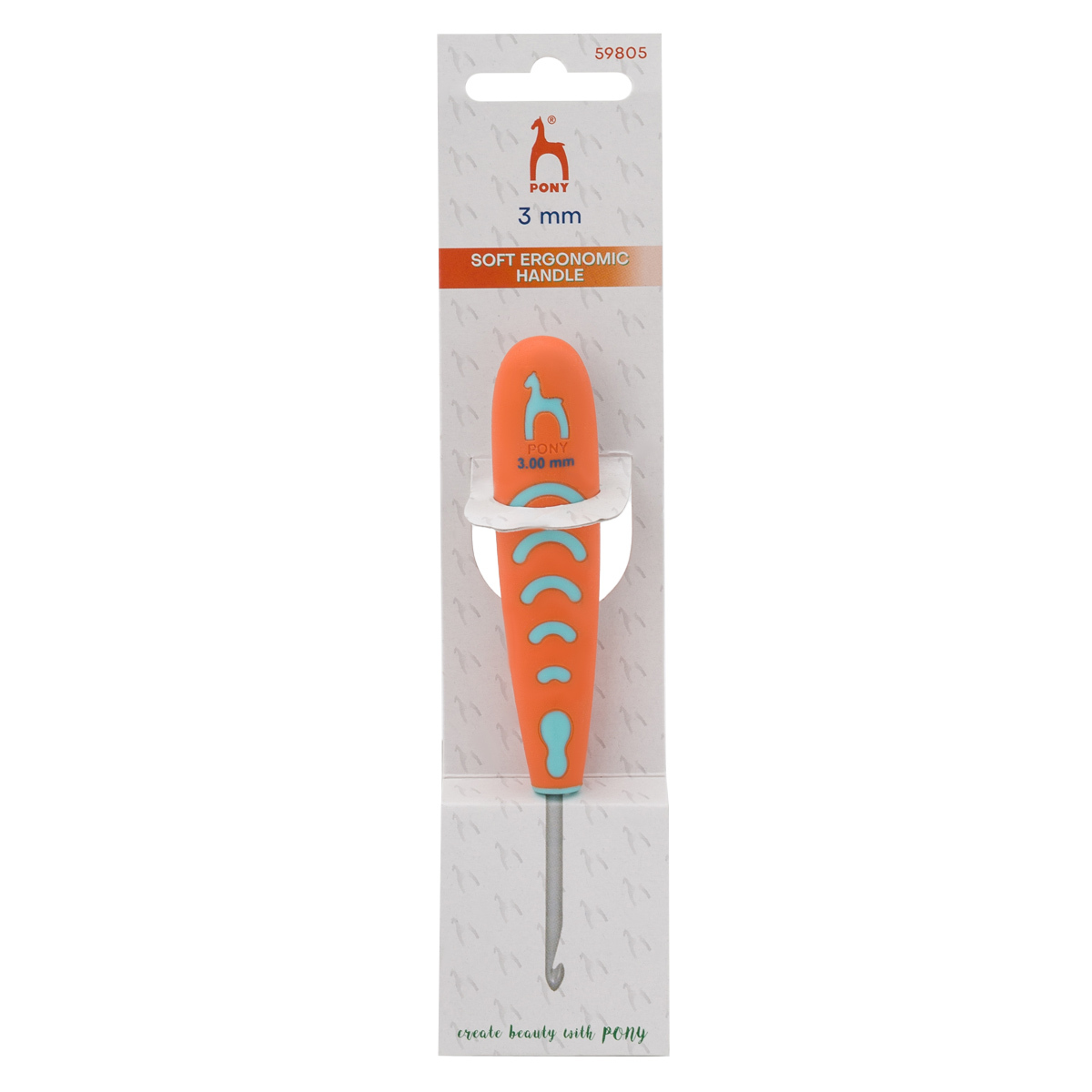 Крючок для вязания Pony ⌀3.0 мм, 13 см, алюминий, с эргономичной ручкой, 59805