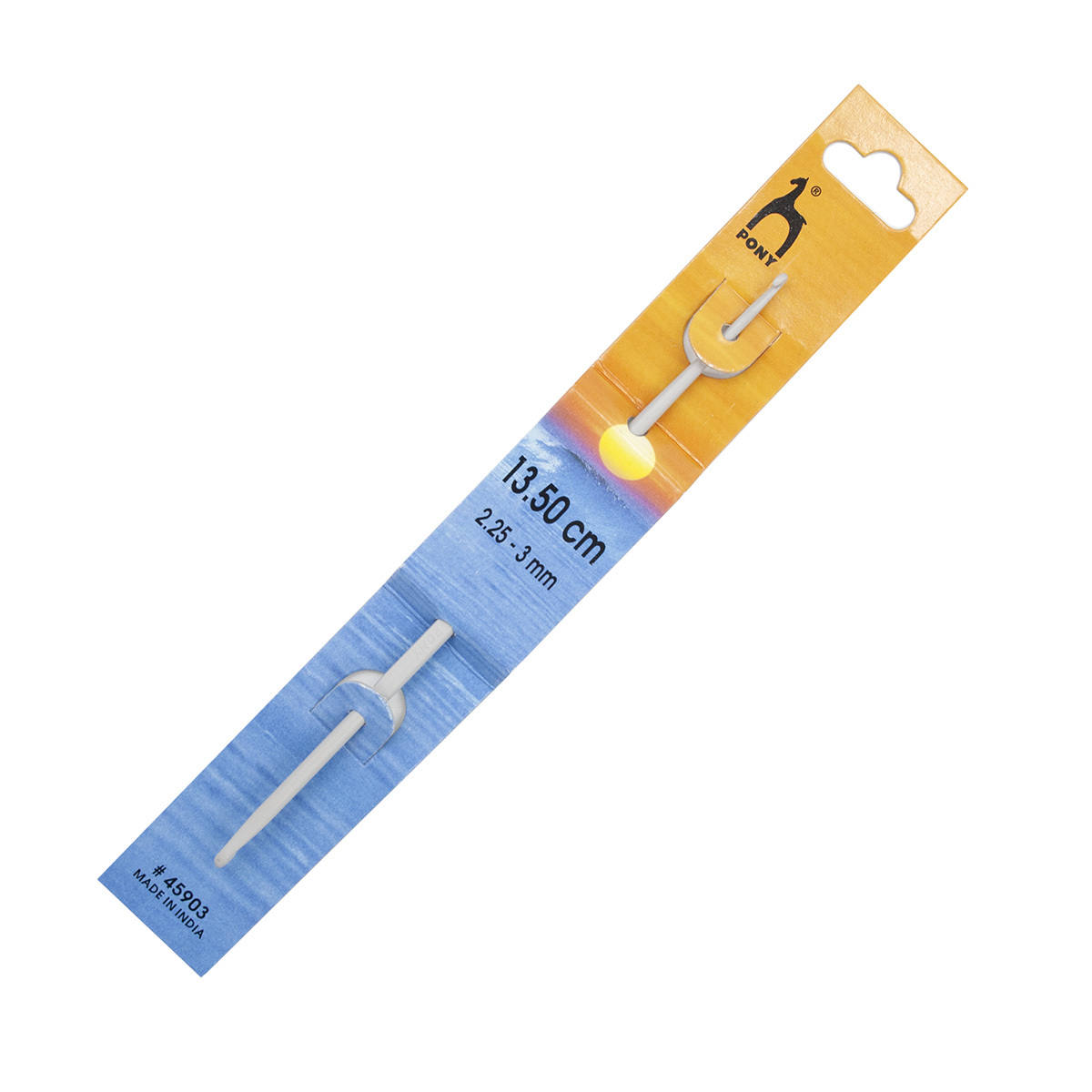 Двусторонний алюминиевый крючок PONY предназначен для вязания из тонкой пряжи, для создания ажурного полотна. Изготовлен из алюминия, легкий и компактный. Благодаря специальной обработке металла (электролитическому оксидированию) нить легко скользит при работе, поверхность защищена от коррозии, а светлая шерстяная пряжа от соприкосновения с инструментом не меняет цвет. Аккуратная головка классической формы удобна в работе, помогает вывязывать аккуратные петли и формировать правильный узор. Длина крючка: 13,5 см. Диаметр крючка: 2,25-3 мм