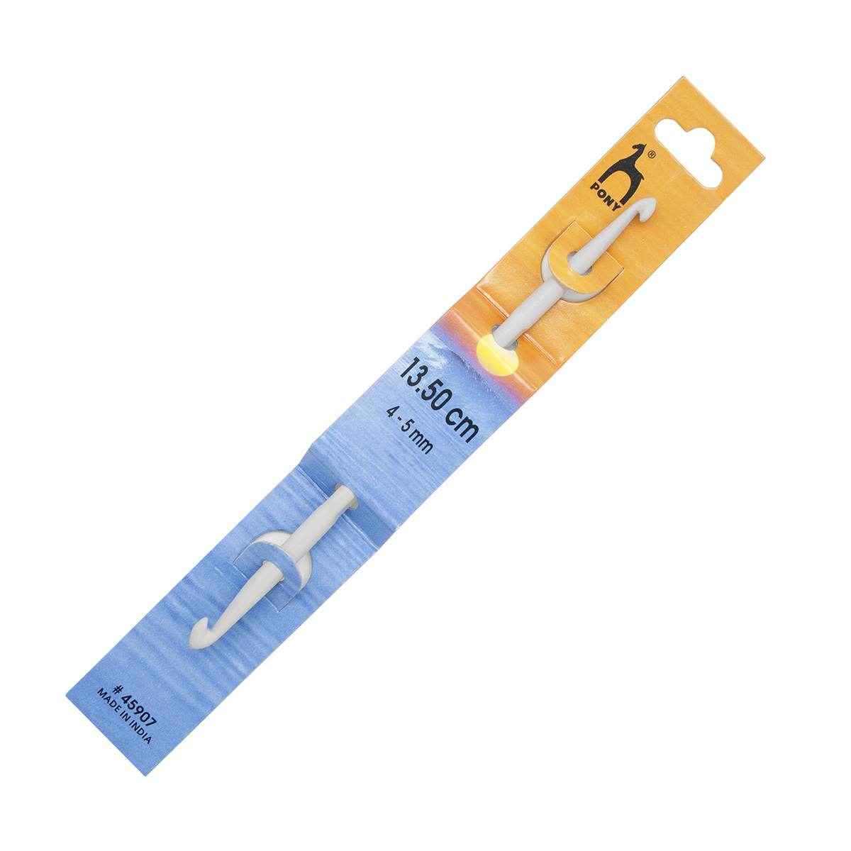 Двусторонний крючок PONY изготовлен из алюминия, легкий и компактный, предназначен для вязания из тонкой и средней пряжи. Благодаря специальной обработке металла (электролитическому оксидированию) нить легко скользит при работе, поверхность защищена от коррозии, а светлая шерстяная пряжа от соприкосновения с инструментом не меняет цвет. Аккуратная головка классической формы удобна в работе, помогает вывязывать аккуратные петли и формировать правильный узор. Длина крючка: 13,5 см. Диаметр крючка: 4-5 мм