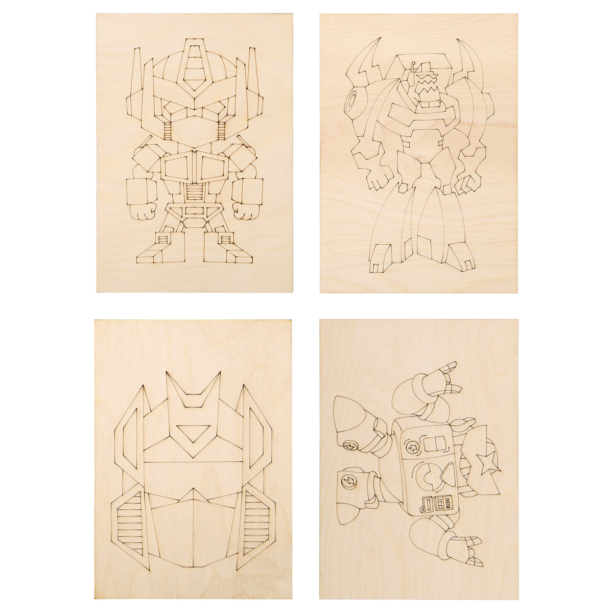 Набор досок для выжигания, выпиливания, рисования Трансформеры, 4 шт, формат А5, L-2308