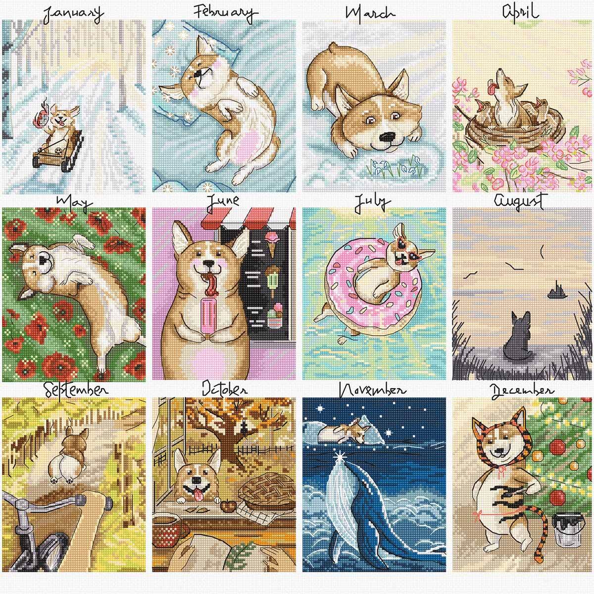 Набор для вышивания нитками LetiStitch L8086, Собачий календарь, 43х41 см
