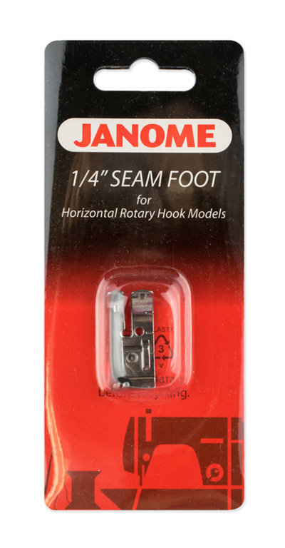 Лапка предназначена для соединения деталей ткани при лоскутных работах с припуском на 1/4 дюйма. Небольшое отверстие под иглу дает правильный прижим материала и обеспечивает ровную строчку и одинаковый припуск по всему краю, что дает аккуратный и опрятный вид готового изделия. Совместимые швейные машины: Janome: Schoolmate S3015, 2003P, 3018DC, 3125, Sew Precise, 405, 415, 419S, 423S, 509, 4612, 4618, 4623, 6019QC, 6125QC, 6260QC, Classmate S-750, DC2007LE, DC3018, DC3050, Decor Excel 5018, Decor Excel Pro 5124, 625E, HT2008, 661 Jem Gold 2, Jem Gold 660, Jem Platinum 720, Jem Platinum 760, 712T, 7306, 7312, 7318, 7330, JS1008, MC3000, MC3500, MC4000, MC4400QC, MC4800QC, MC4900QC, MC5700, MC6500, MC6600, MC7000, MC7500, MC9000, MC9500, MC9700, MC10000, MC10001 and MC11000.
