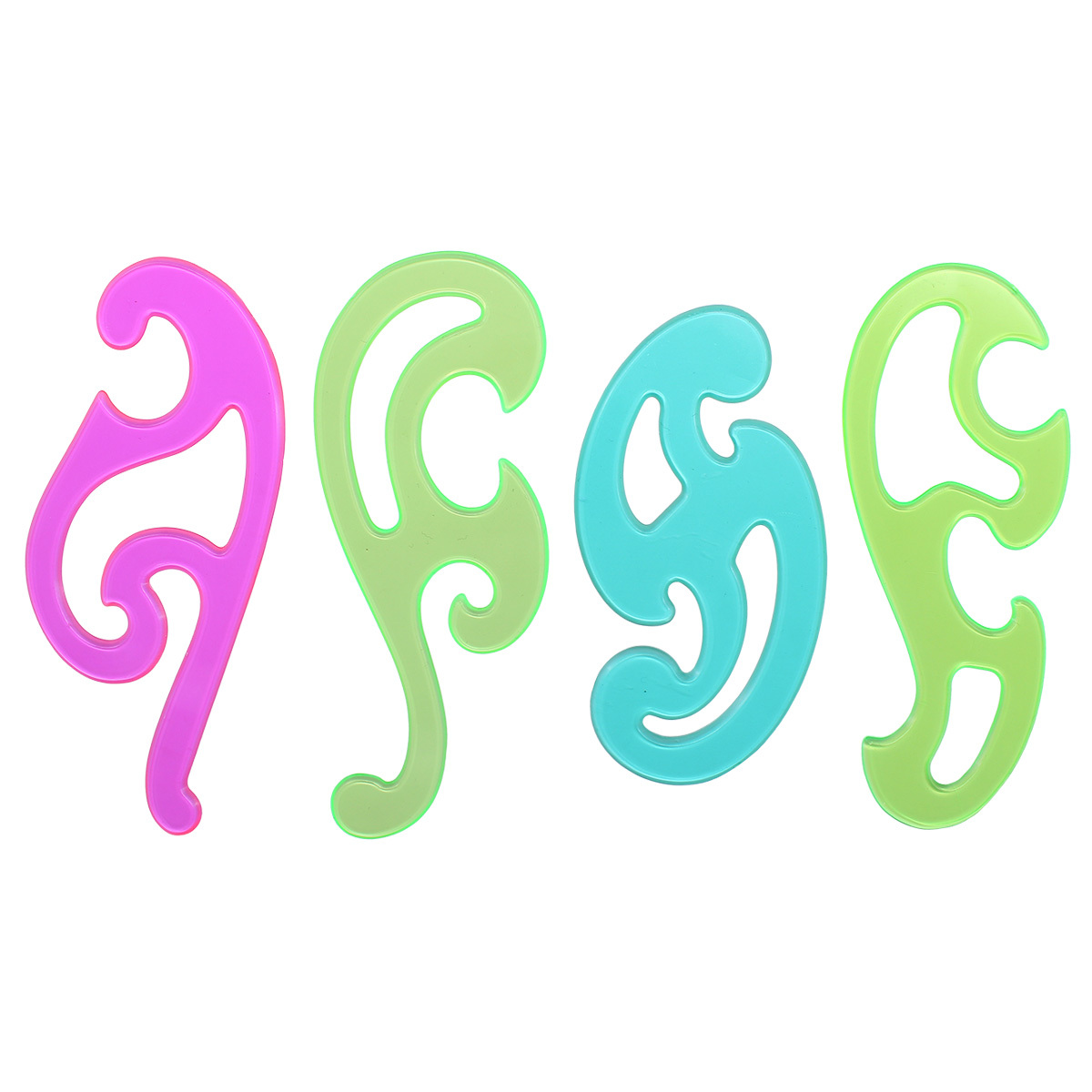 Лекала, 4 шт, прозрачные, цветные, РНЛ01