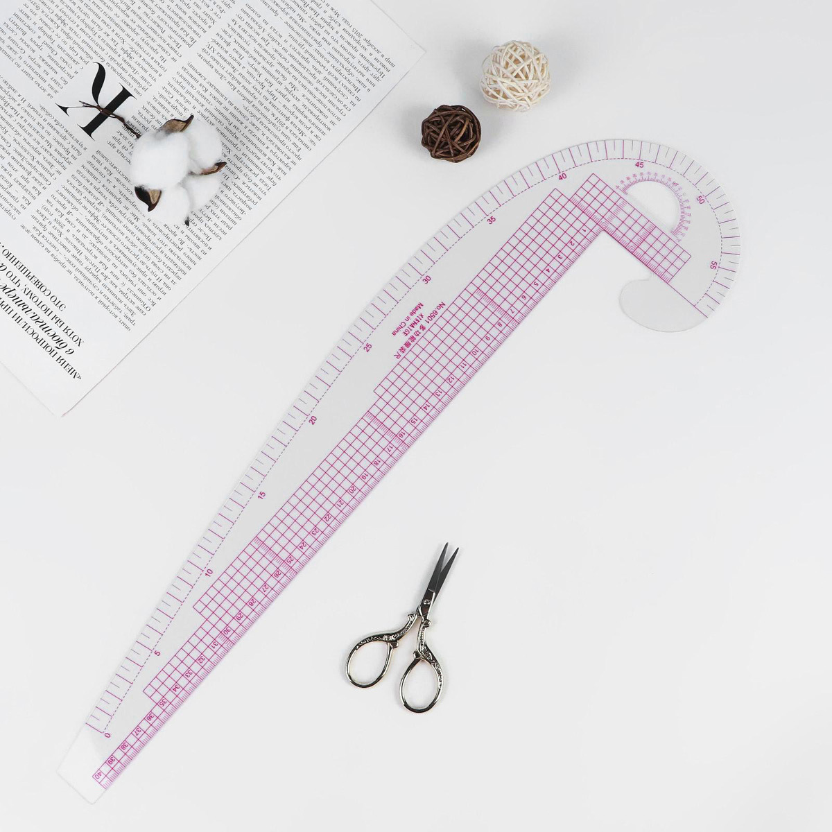 Портновское лекало 'бочок' пригодится тем, кто занимается разработкой моделей одежды, шитьем, а также изготовлением игрушек и другим рукоделием. Используйте эти лекала, чтобы конструировать выкройки или корректировать готовые. Позволяет рисовать косые и прямые линии кроя, в том числе пройму и воротник. Подходит также для наметки и прорисовки различных сложных и мелких деталей, создания аппликаций. Лекало изготовлено из прозрачного пластика. Для дополнительной точности предусмотрена сантиметровая разметка. Размер: 47х12,5 см.