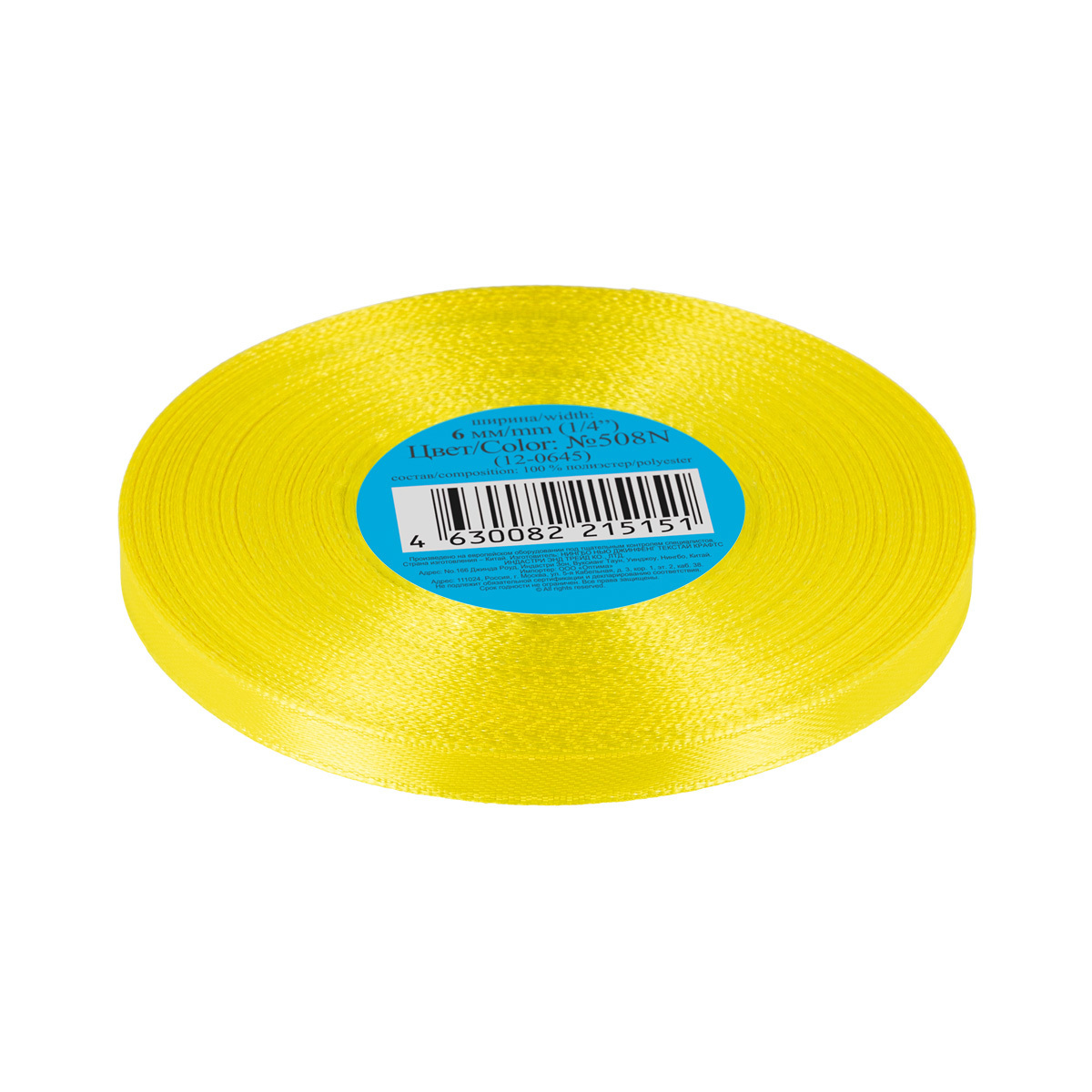 Лента атласная 1-сторонняя 6.0 мм / 33±2 метра, №508N(12-0645) ярко-желтый, Gamma