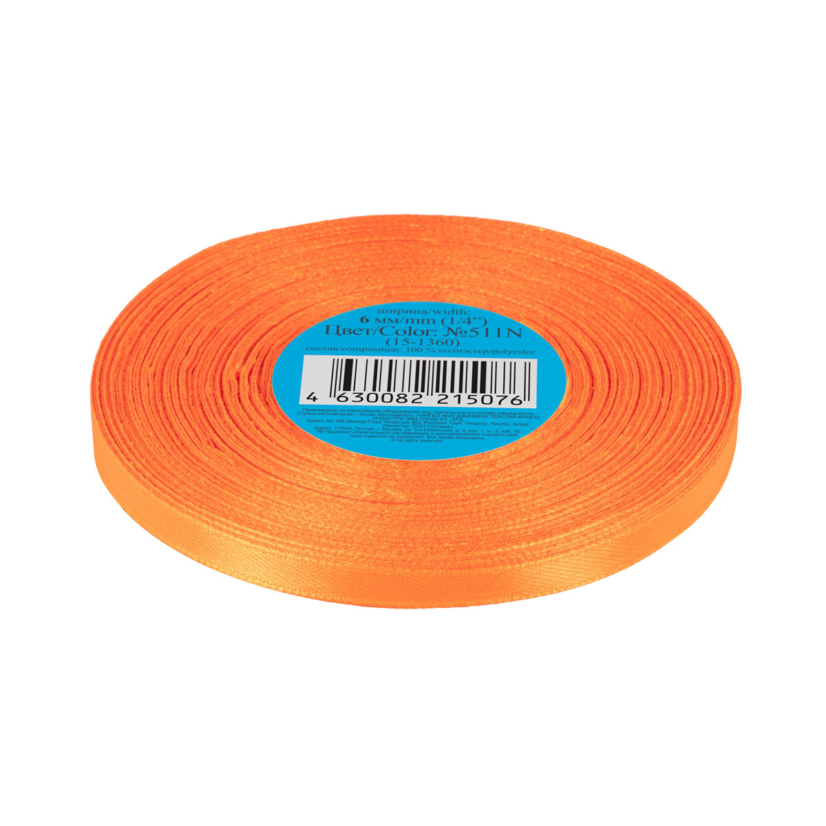 Лента атласная 1-сторонняя 6.0 мм / 33±2 метра, №511N(15-1360) оранжевый(неон), Gamma