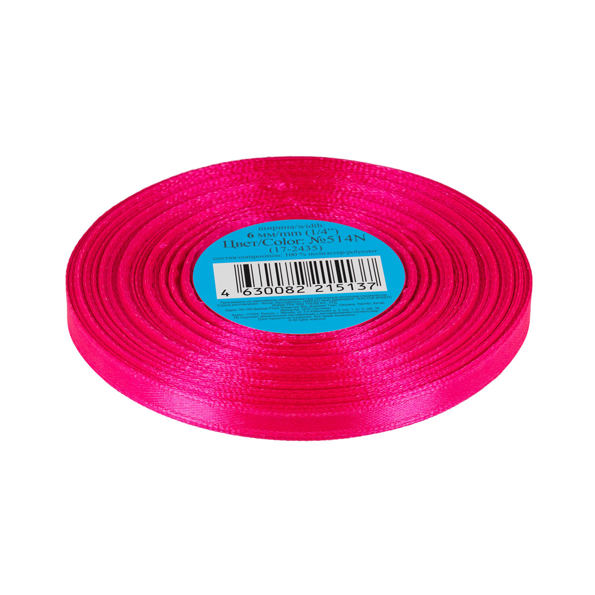 Лента атласная 1-сторонняя 6.0 мм / 33±2 метра, №514N(17-2435) фуксия(неон), Gamma