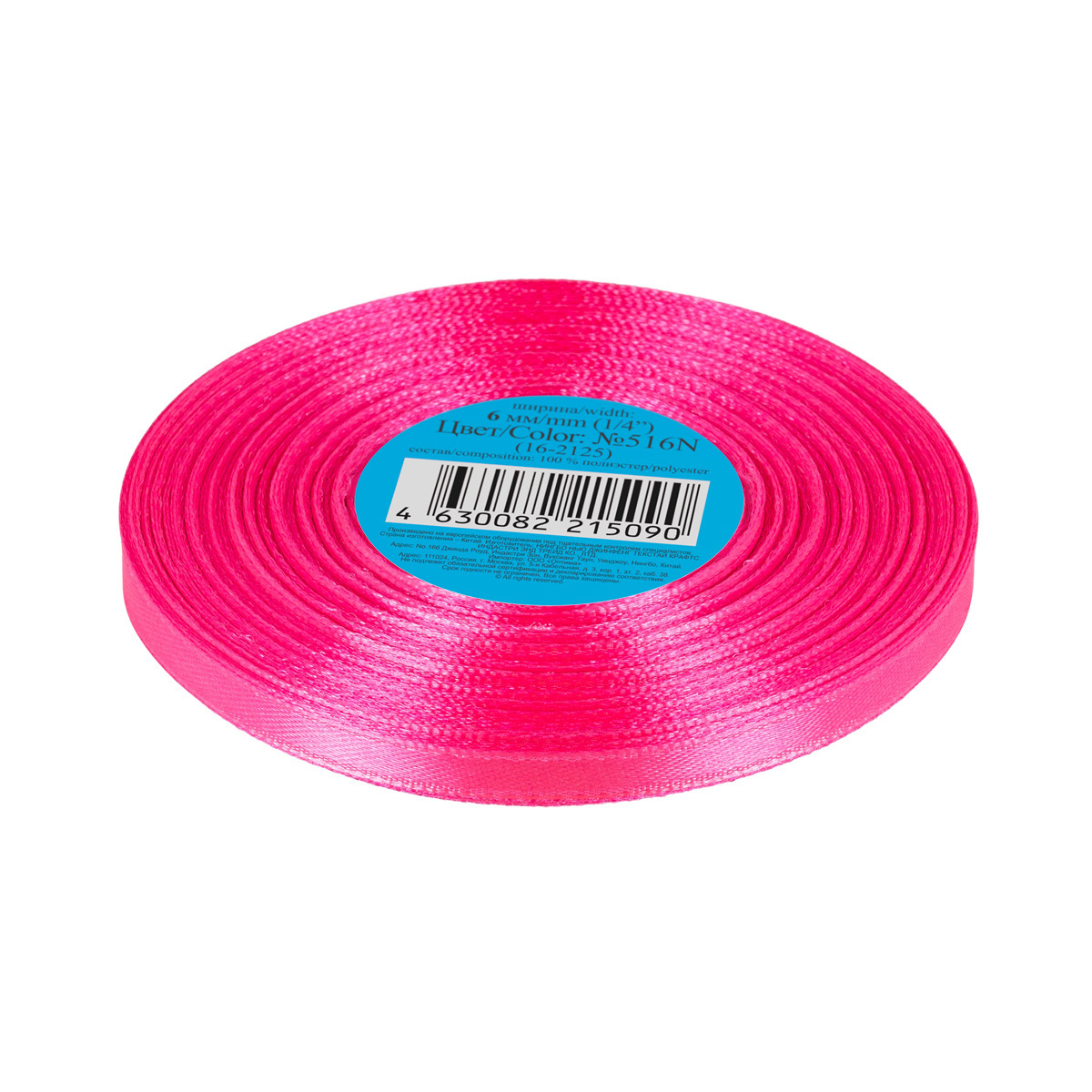 Лента атласная 1-сторонняя 6.0 мм / 33±2 метра, №516N(16-2125) бледно-розовый, Gamma
