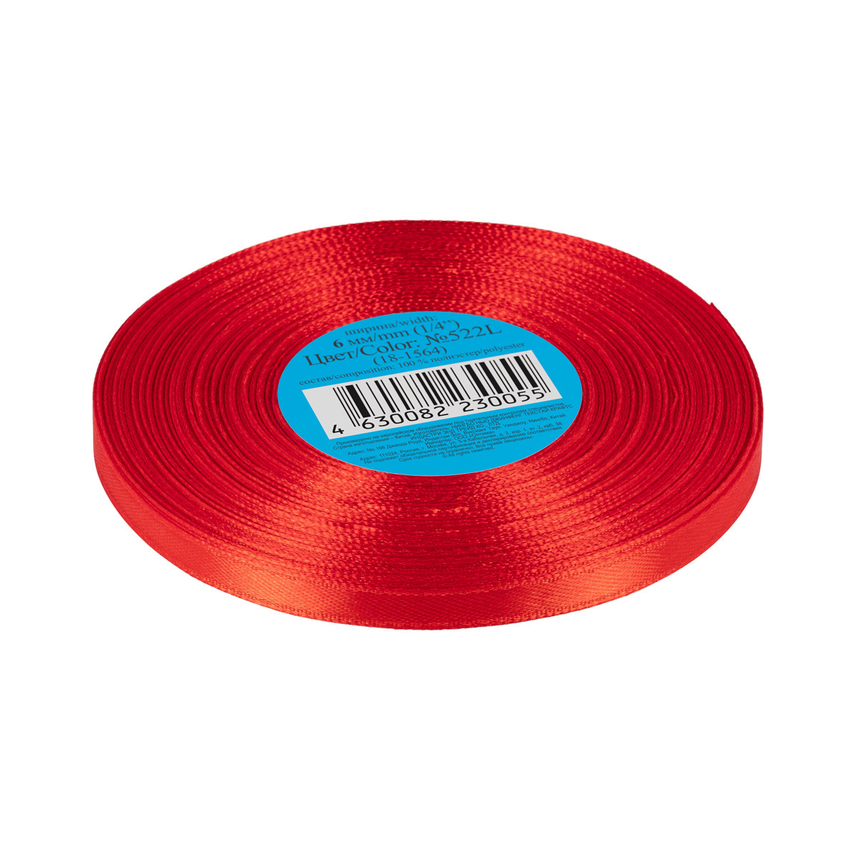 Лента атласная 1-сторонняя 6.0 мм / 33±2 метра, №522L(18-1564) красный, Gamma