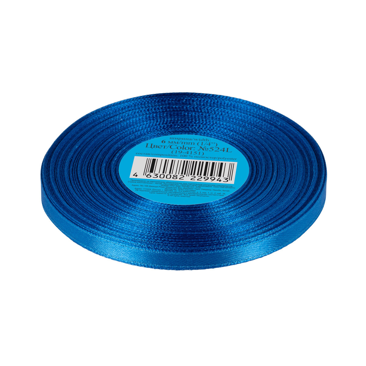 Лента атласная 1-сторонняя 6.0 мм / 33±2 метра, №524L(19-4151) синий, Gamma