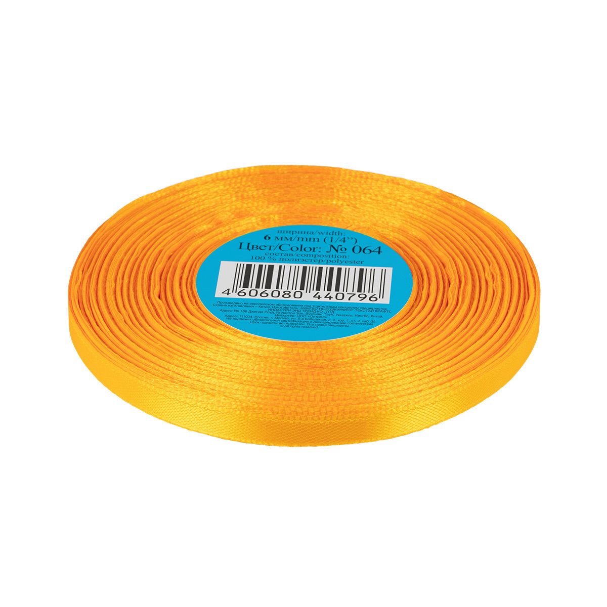 Лента атласная 1-сторонняя 6.0 мм / 33±2 метра, 064 желтый, Gamma