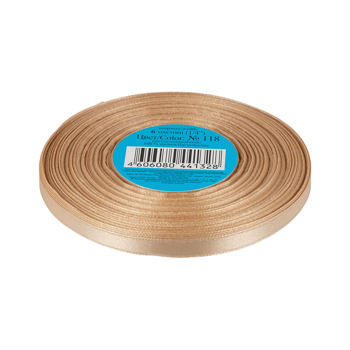 Лента атласная 1-сторонняя 6.0 мм / 33±2 метра, 118 св.бежевый, Gamma