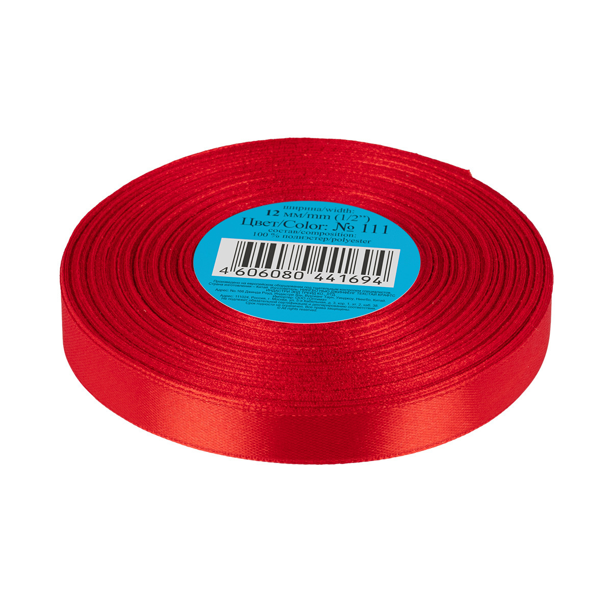 Лента атласная 1-сторонняя 12.0 мм / 33±2 метра, 111 красный, Gamma