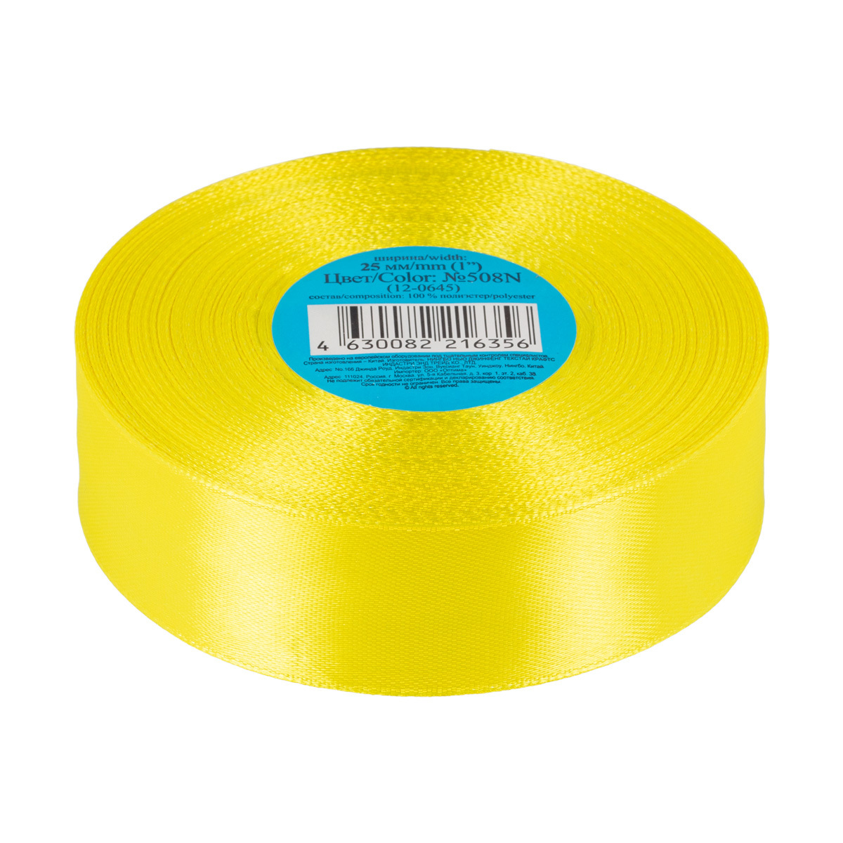 Лента атласная 1-сторонняя 25.0 мм / 33±2 метра, №508N(12-0645) ярко-желтый, Gamma