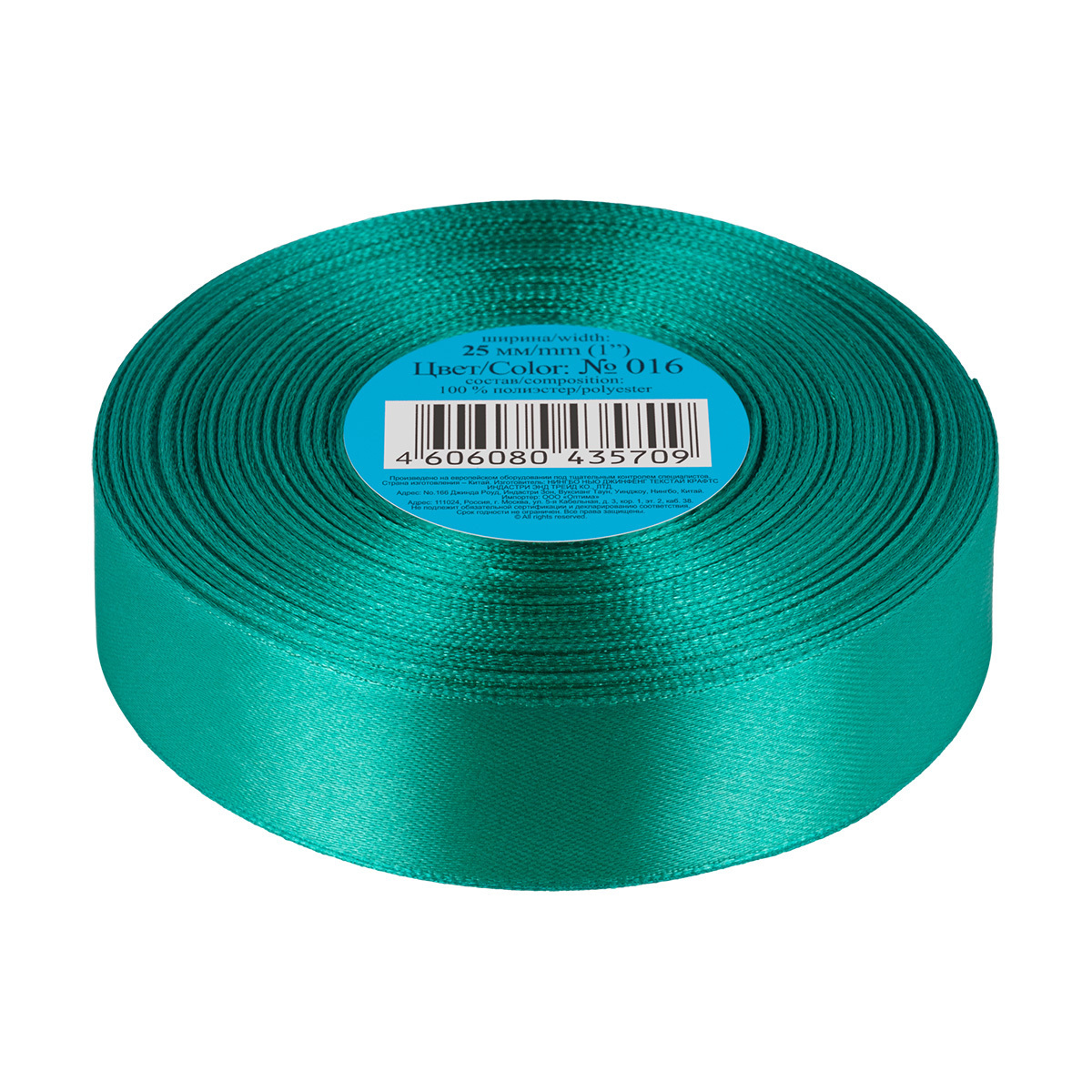Лента атласная 1-сторонняя 25.0 мм / 33±2 метра, 016 изумруд, Gamma