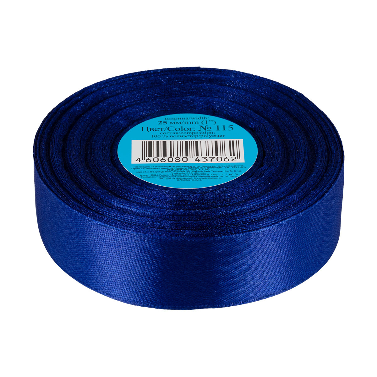 Лента атласная 1-сторонняя 25.0 мм / 33±2 метра, 115 синий, Gamma