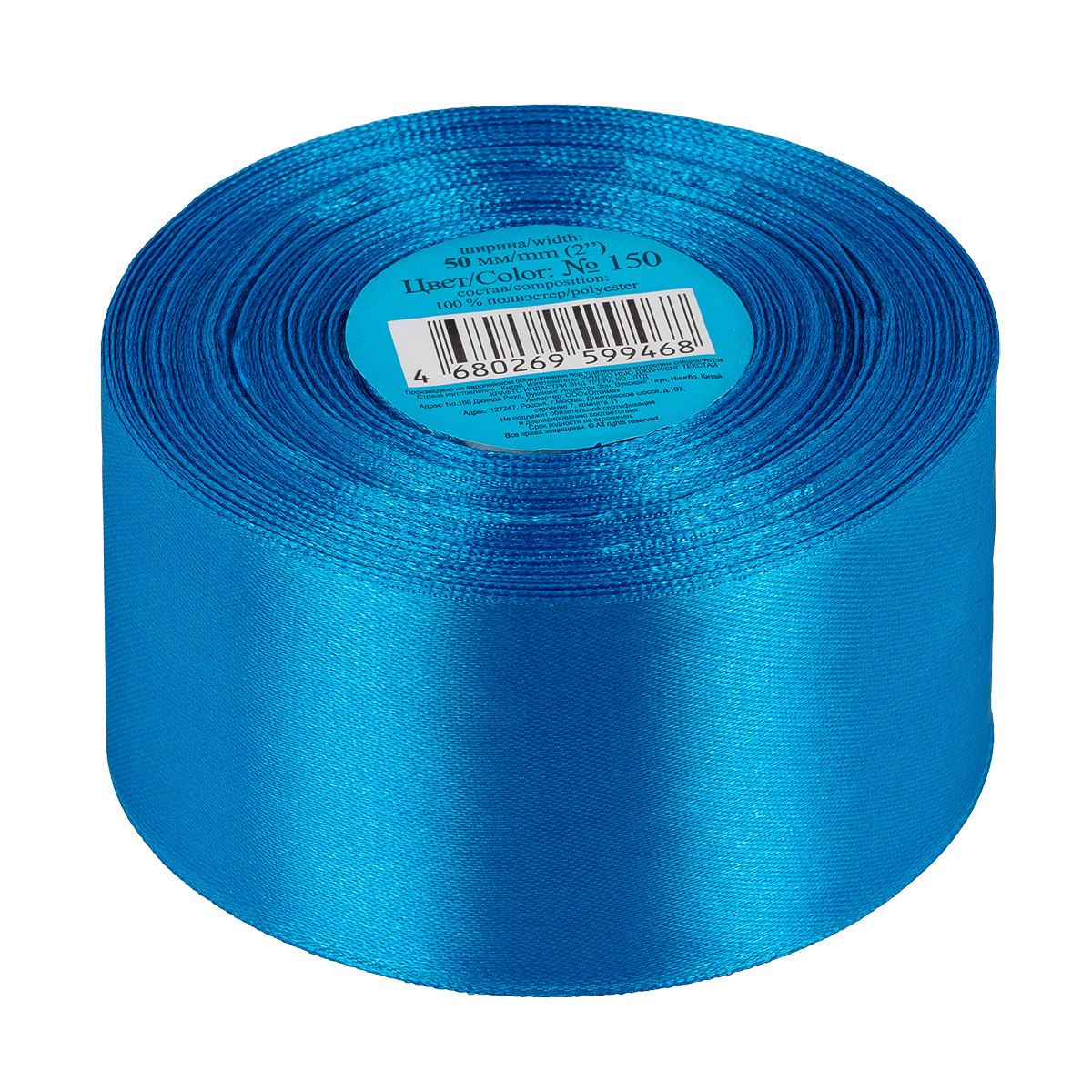 Лента атласная 1-сторонняя 50.0 мм / 33±2 метра, 150 сине-голубой, Gamma