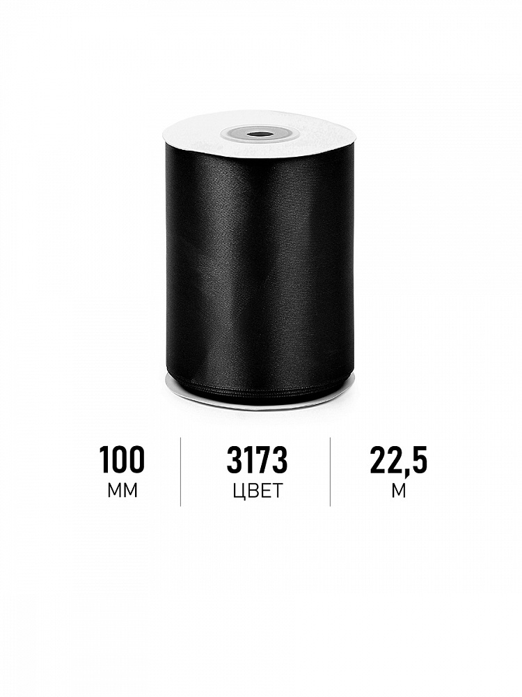 Лента атласная 1-сторонняя 100.0 мм / 22.5±1 метра, 3173 черный, Magic4Hobby
