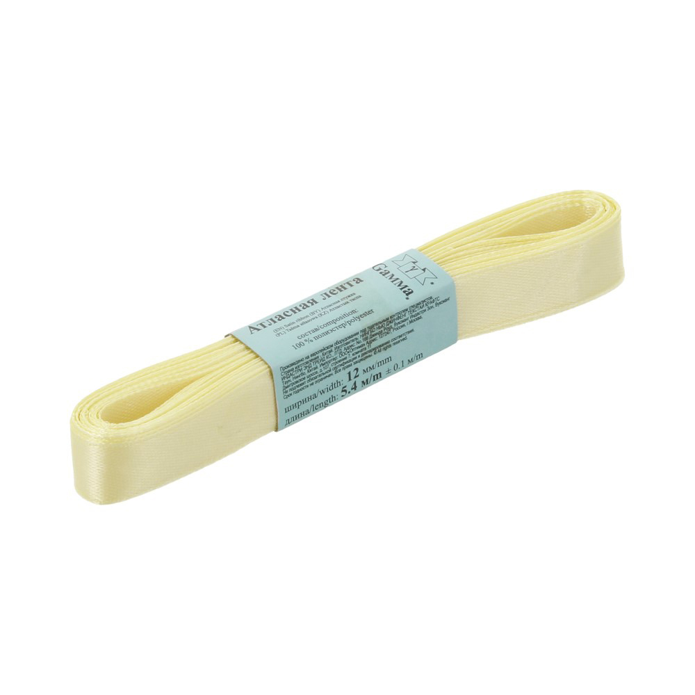 Лента атласная 1-сторонняя 12.0 мм / 10 шт по 5.4 метра, №009 св.желтый, Gamma AL-12P