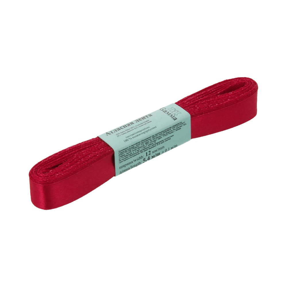 Лента атласная 1-сторонняя 12.0 мм / 10 шт по 5.4 метра, №078 т-бордовый, Gamma AL-12P