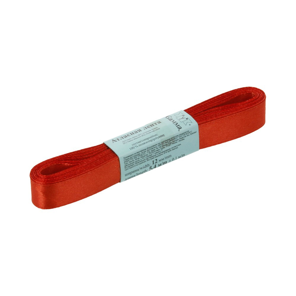 Лента атласная 1-сторонняя 12.0 мм / 10 шт по 5.4 метра, №123 коричнево-бордовый, Gamma AL-12P