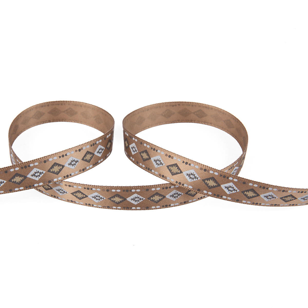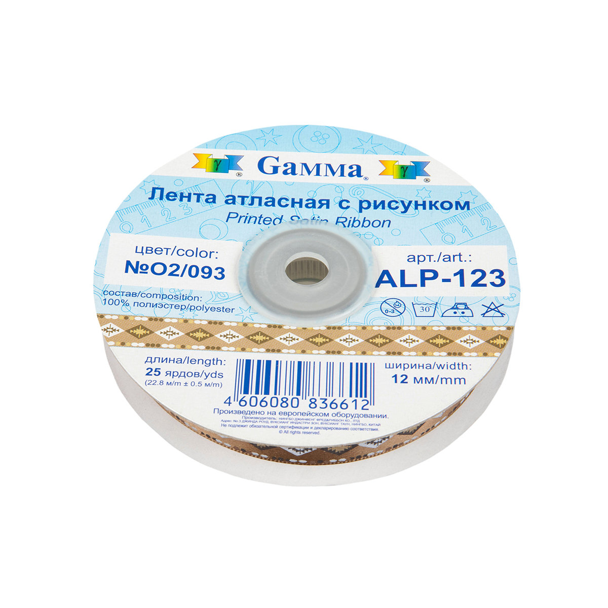 Лента атласная с рисунком 12.0 мм / 22.8 метров, O2/093 орнамент/т.бежевый, Gamma ALP-123