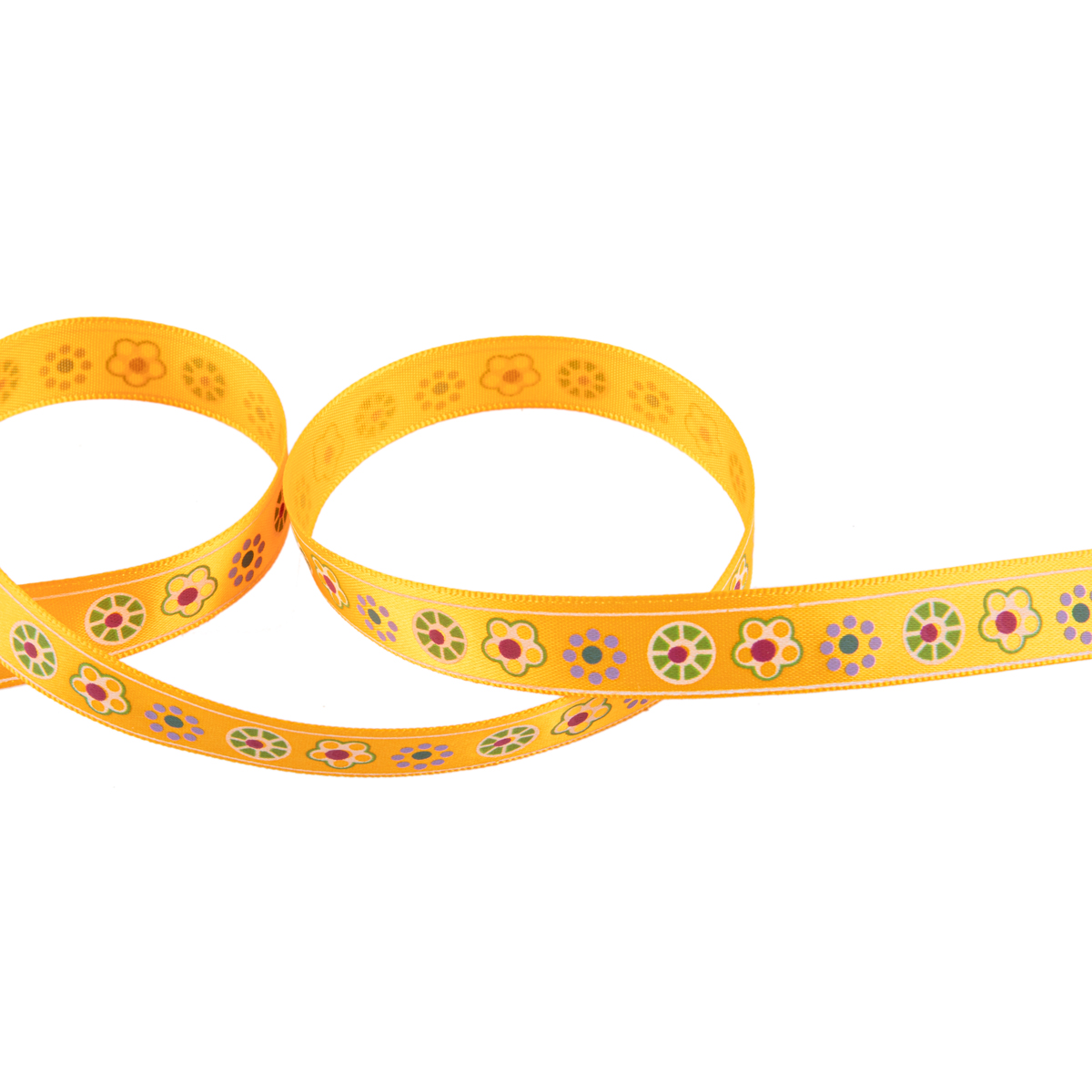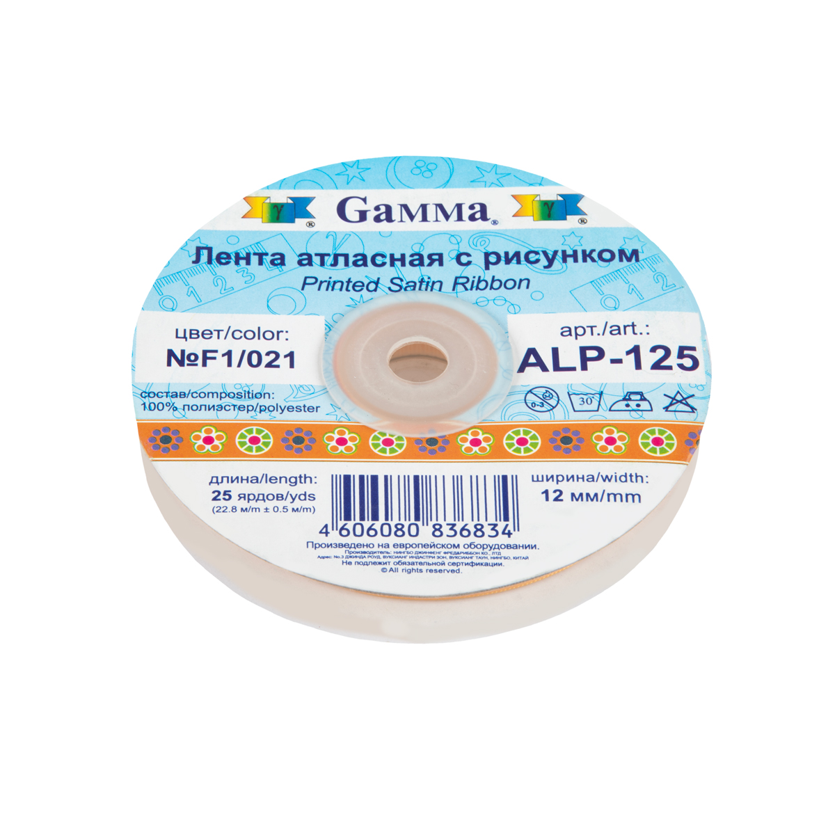 Лента атласная с рисунком 12.0 мм / 22.8 метров, F1/021 цветы/оранжевый, Gamma ALP-125