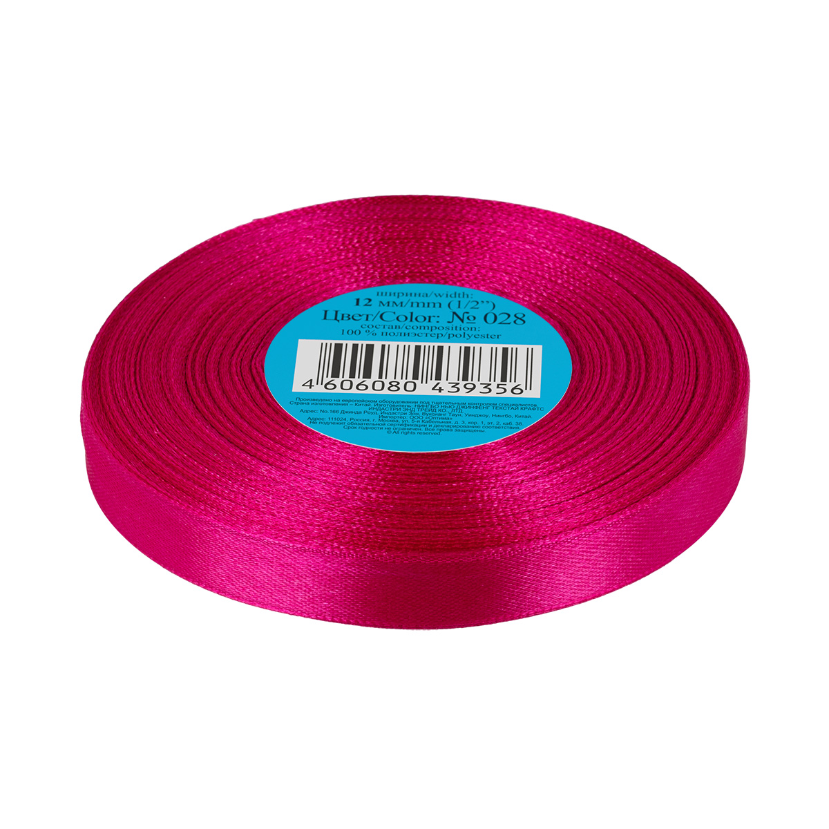 Лента атласная 1-сторонняя 12.0 мм / 33±2 метра, №028 лиловый, в термоплёнке, Gamma
