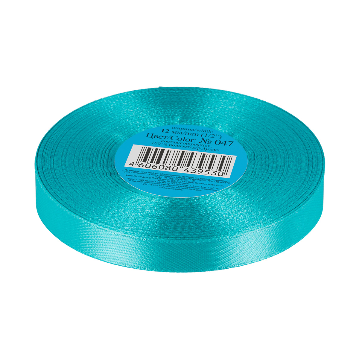 Лента атласная 1-сторонняя 12.0 мм / 33±2 метра, №047 лазурный, в термоплёнке, Gamma