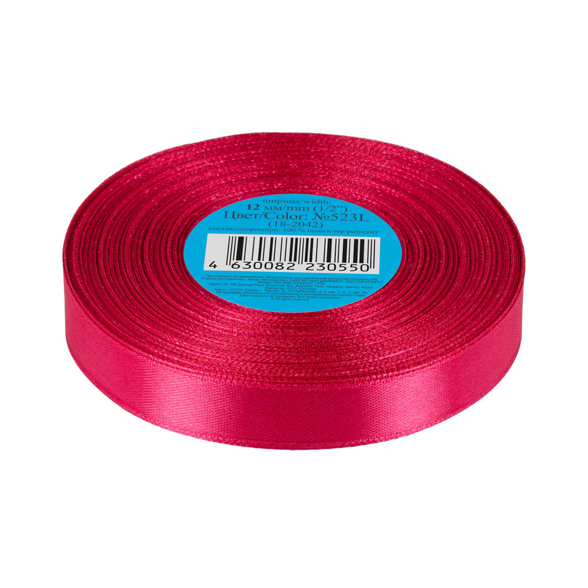 Лента атласная 1-сторонняя 12.0 мм / 33±2 метра, №523L(18-2042) красный, в термоплёнке, Gamma