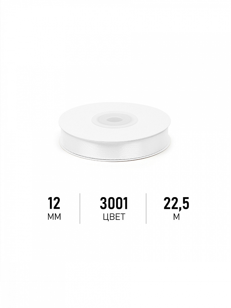 Лента атласная 1-сторонняя 12.0 мм / 22.5±1 метра, 3001 кипенно-белый, Magic4Hobby