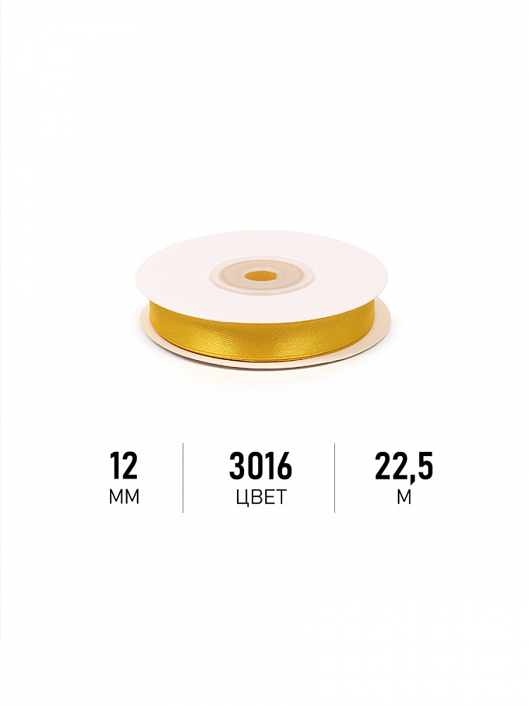 Лента атласная 1-сторонняя 12.0 мм / 22.5±1 метра, 3016 т.желтый, Magic4Hobby