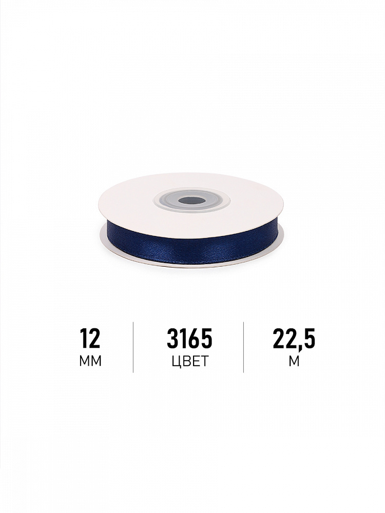 Лента атласная 1-сторонняя 12.0 мм / 22.5±1 метра, 3165 синий, Magic4Hobby