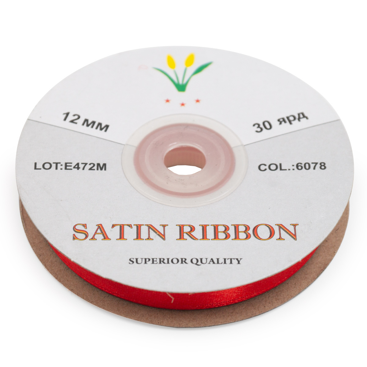 Лента атласная 1-сторонняя 12.0 мм / 27.4±2 метров, 6078 красный 8055 / красный 026, Globus