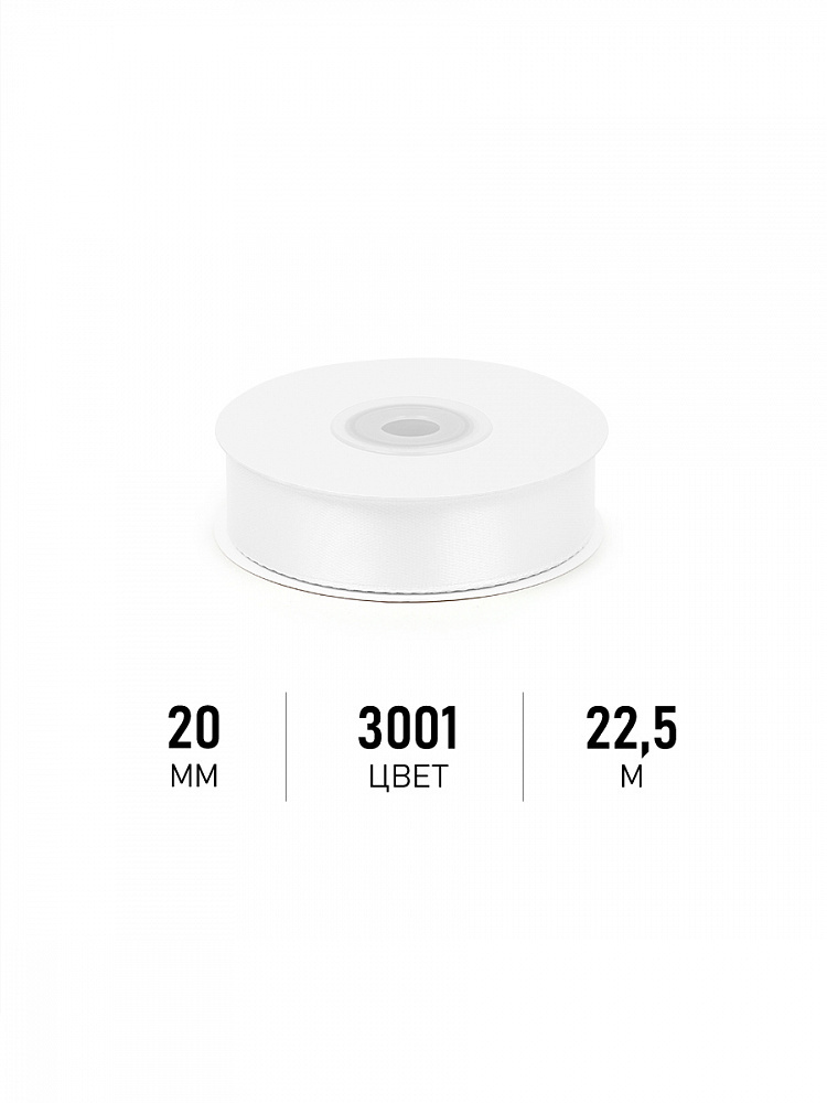 Лента атласная 1-сторонняя 20.0 мм / 22.5±1 метра, 3001 кипенно-белый, Magic4Hobby