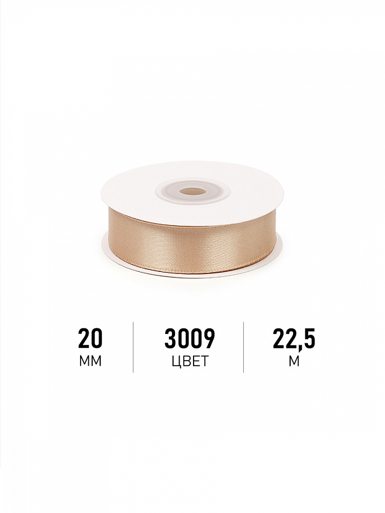Лента атласная 1-сторонняя 20.0 мм / 22.5±1 метра, 3009 бежевый, Magic4Hobby