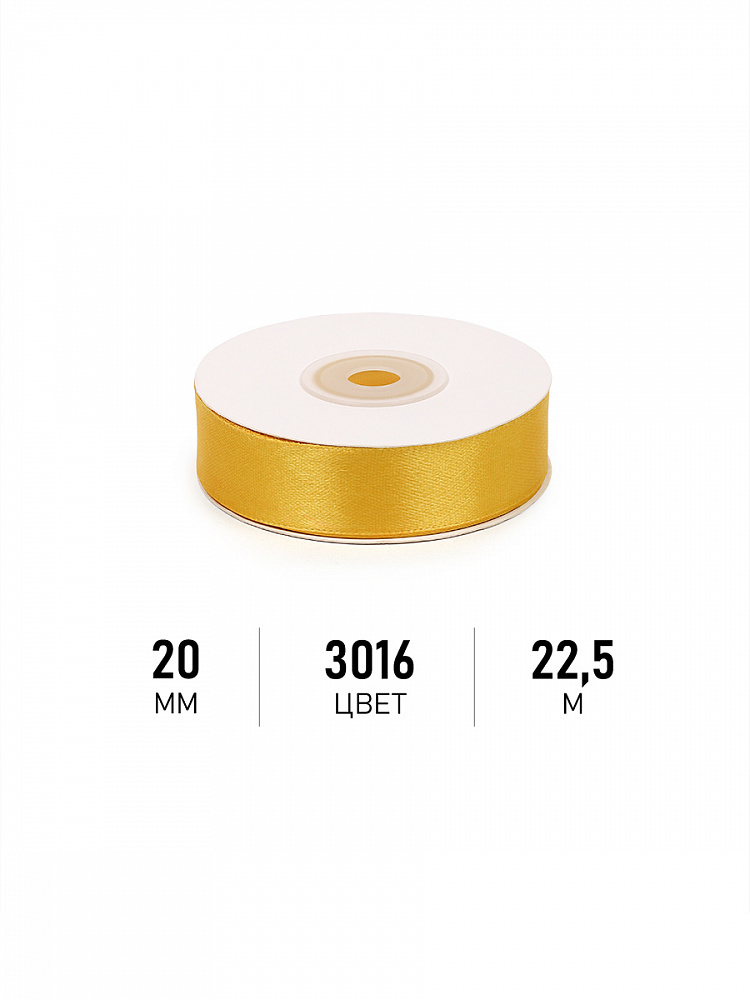 Лента атласная 1-сторонняя 20.0 мм / 22.5±1 метра, 3016 т.желтый, Magic4Hobby