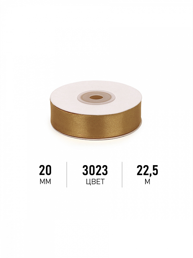 Лента атласная 1-сторонняя 20.0 мм / 22.5±1 метра, 3023 т.золотой, Magic4Hobby