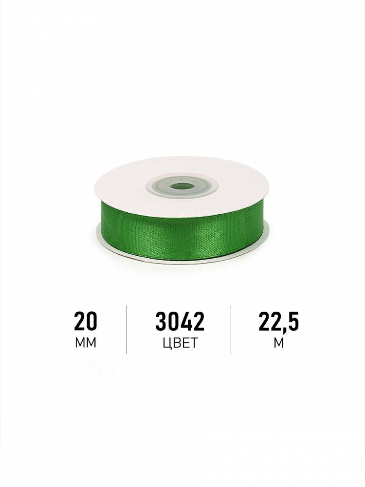 Лента атласная 1-сторонняя 20.0 мм / 22.5±1 метра, 3042 зеленый, Magic4Hobby