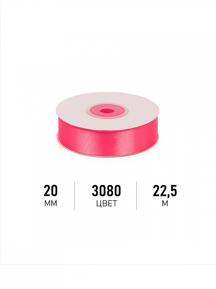 Лента атласная 1-сторонняя 20.0 мм / 22.5±1 метра, 3080 ярк.розовый, Magic4Hobby