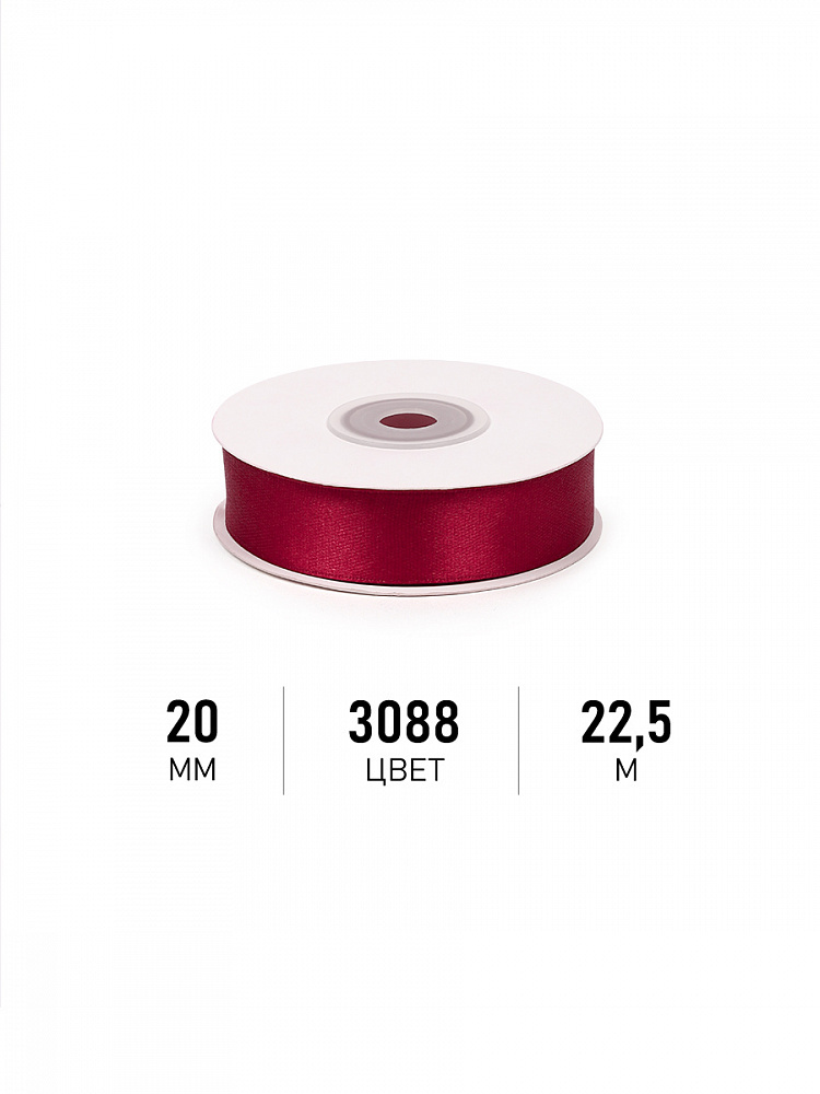 Лента атласная 1-сторонняя 20.0 мм / 22.5±1 метра, 3088 т.бордовый, Magic4Hobby