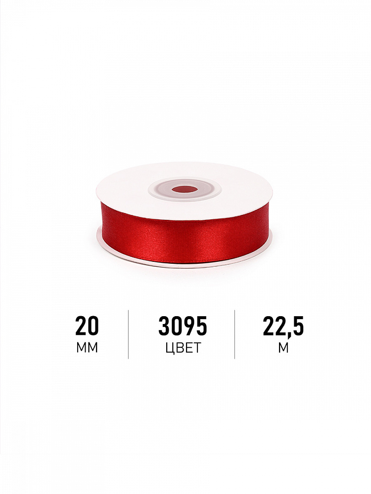 Лента атласная 1-сторонняя 20.0 мм / 22.5±1 метра, 3095 красный, Magic4Hobby