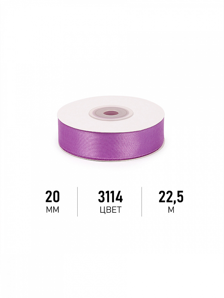 Лента атласная 1-сторонняя 20.0 мм / 22.5±1 метра, 3114 фиолетовый, Magic4Hobby