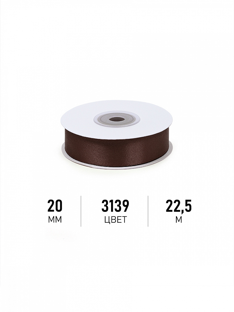 Лента атласная 1-сторонняя 20.0 мм / 22.5±1 метра, 3139 т.коричневый, Magic4Hobby