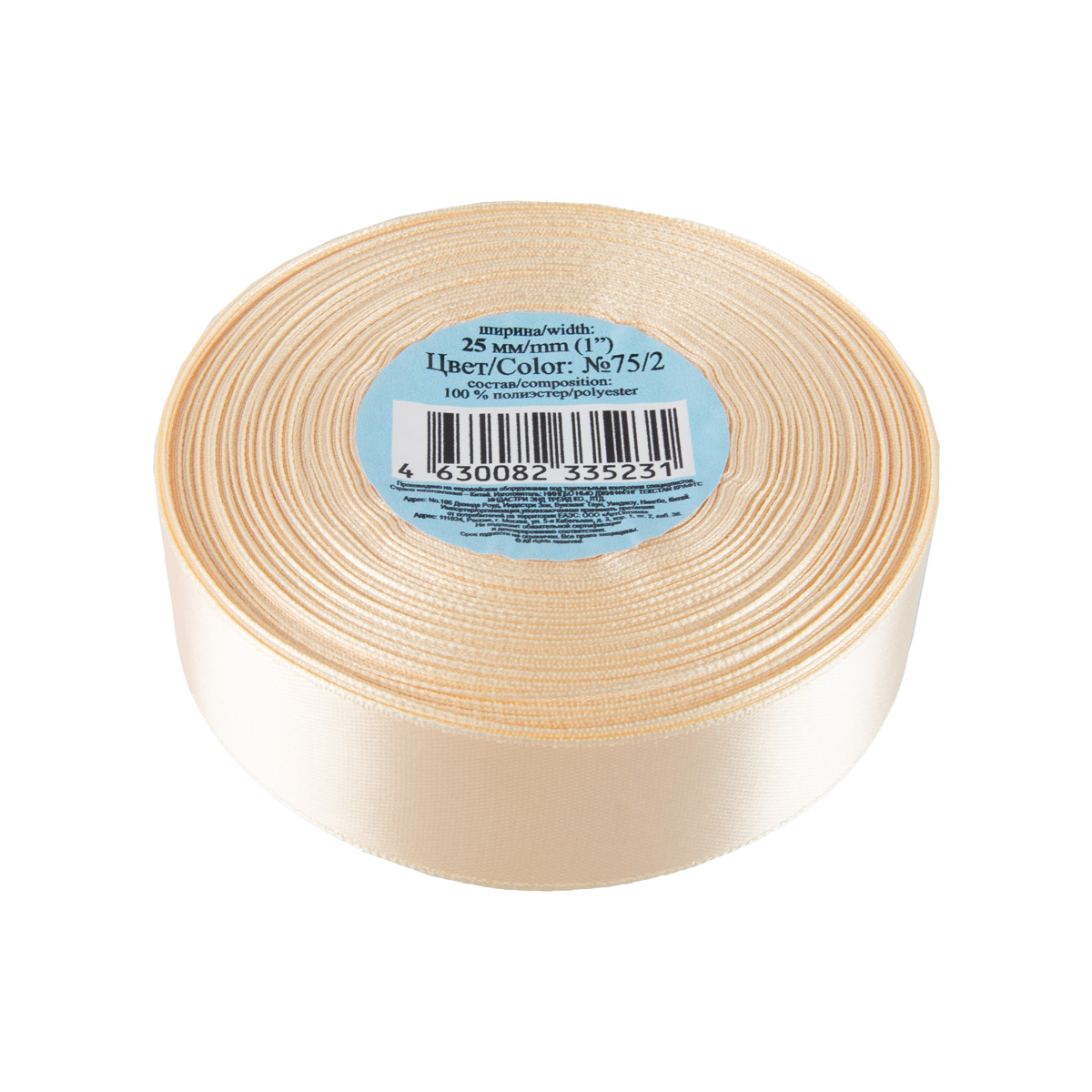 Лента атласная 1-сторонняя 25.0 мм / 33±2 метра, №075/2 кремово-персиковый, Gamma