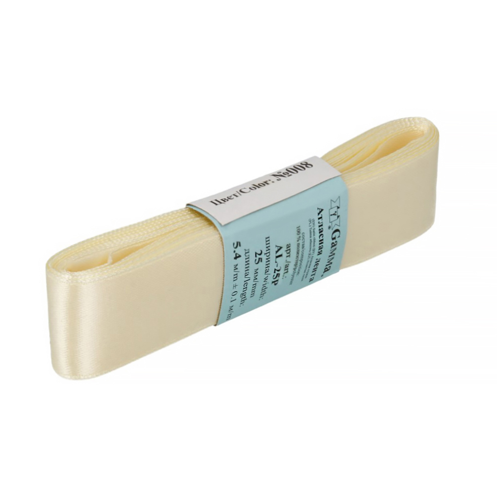 Лента атласная 1-сторонняя 25.0 мм / 5 шт по 5.4 метра, №008 кремовый, Gamma AL-25P