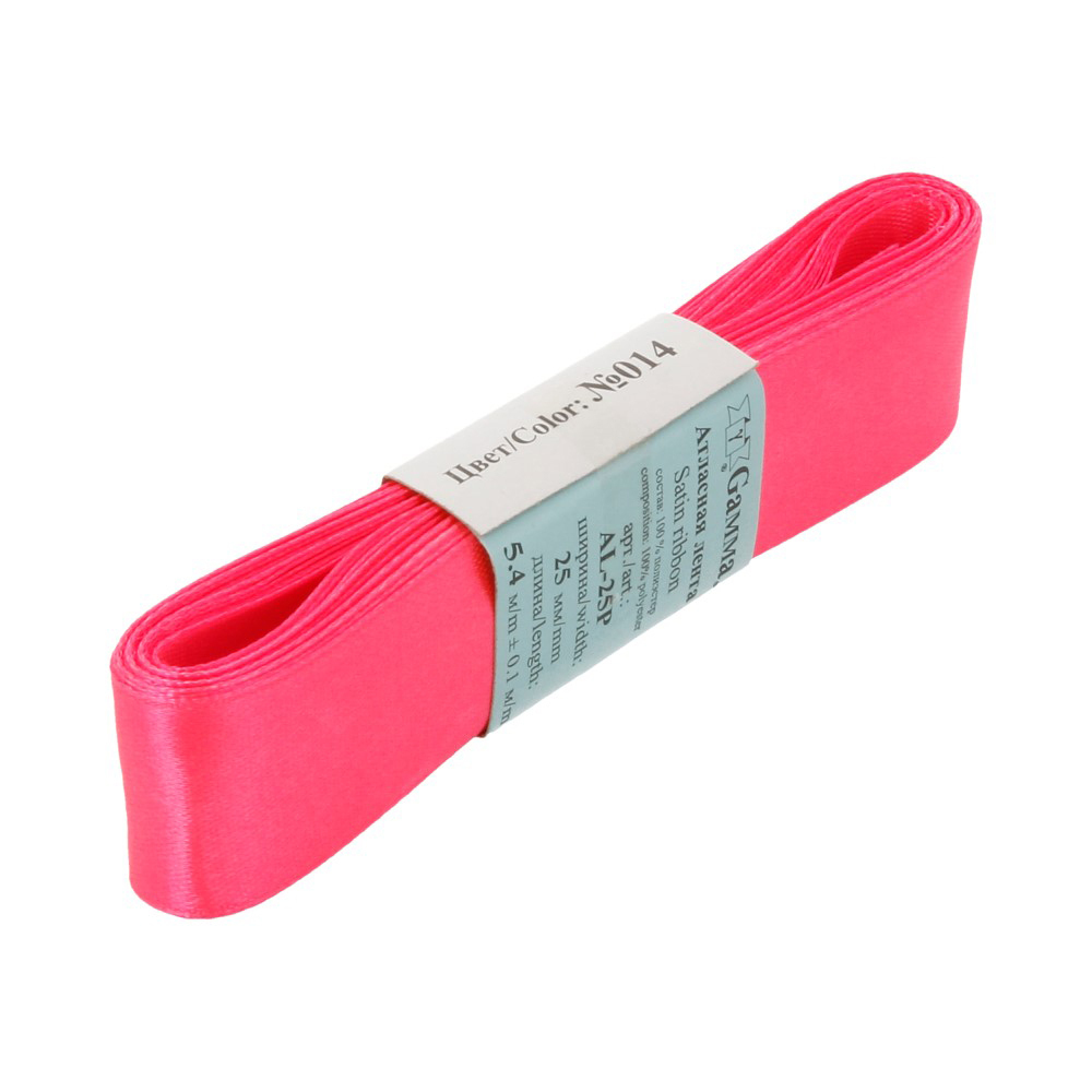 Лента атласная 1-сторонняя 25.0 мм / 5 шт по 5.4 метра, №014 яр.розовый, Gamma AL-25P