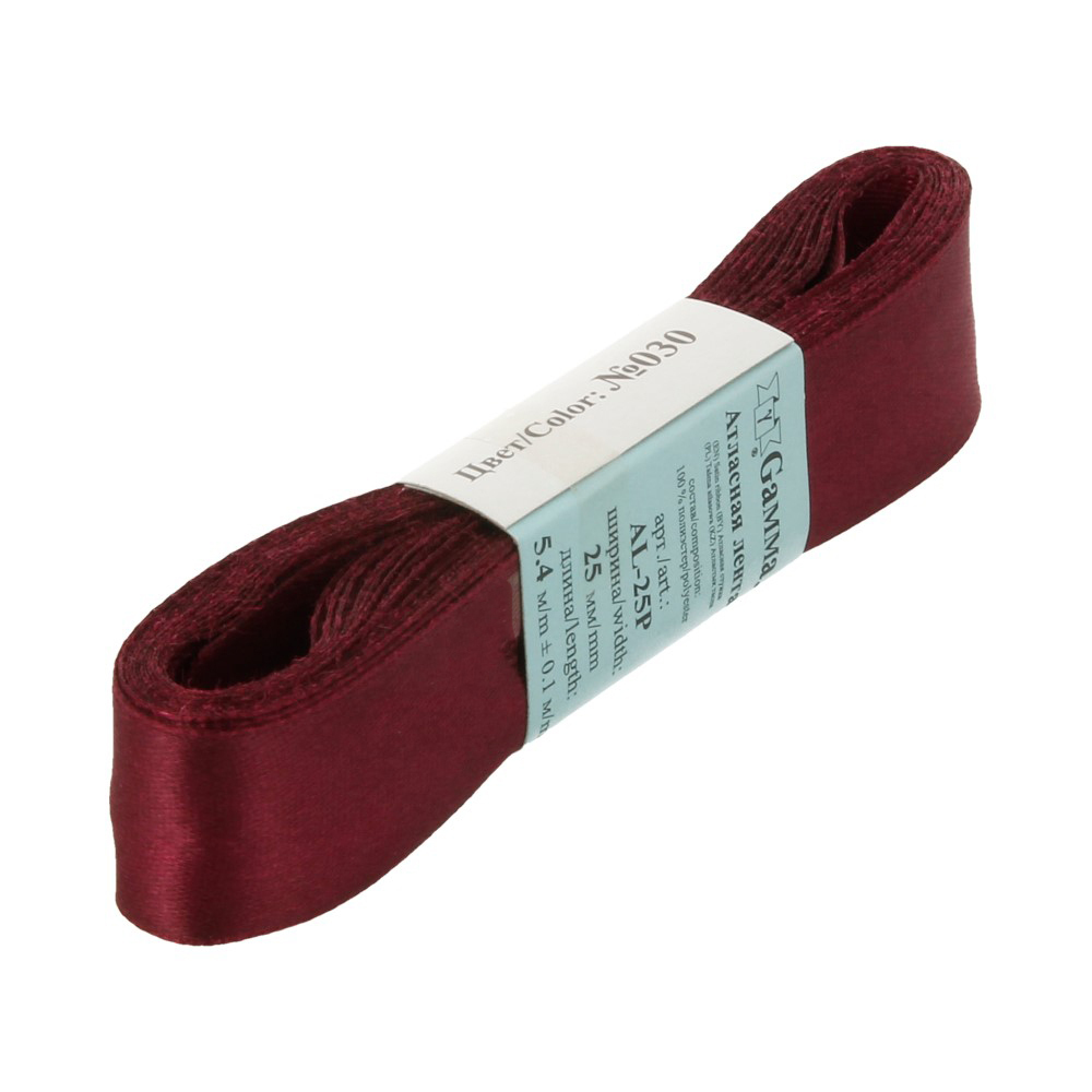 Лента атласная 1-сторонняя 25.0 мм / 5 шт по 5.4 метра, №030 т.бордовый, Gamma AL-25P