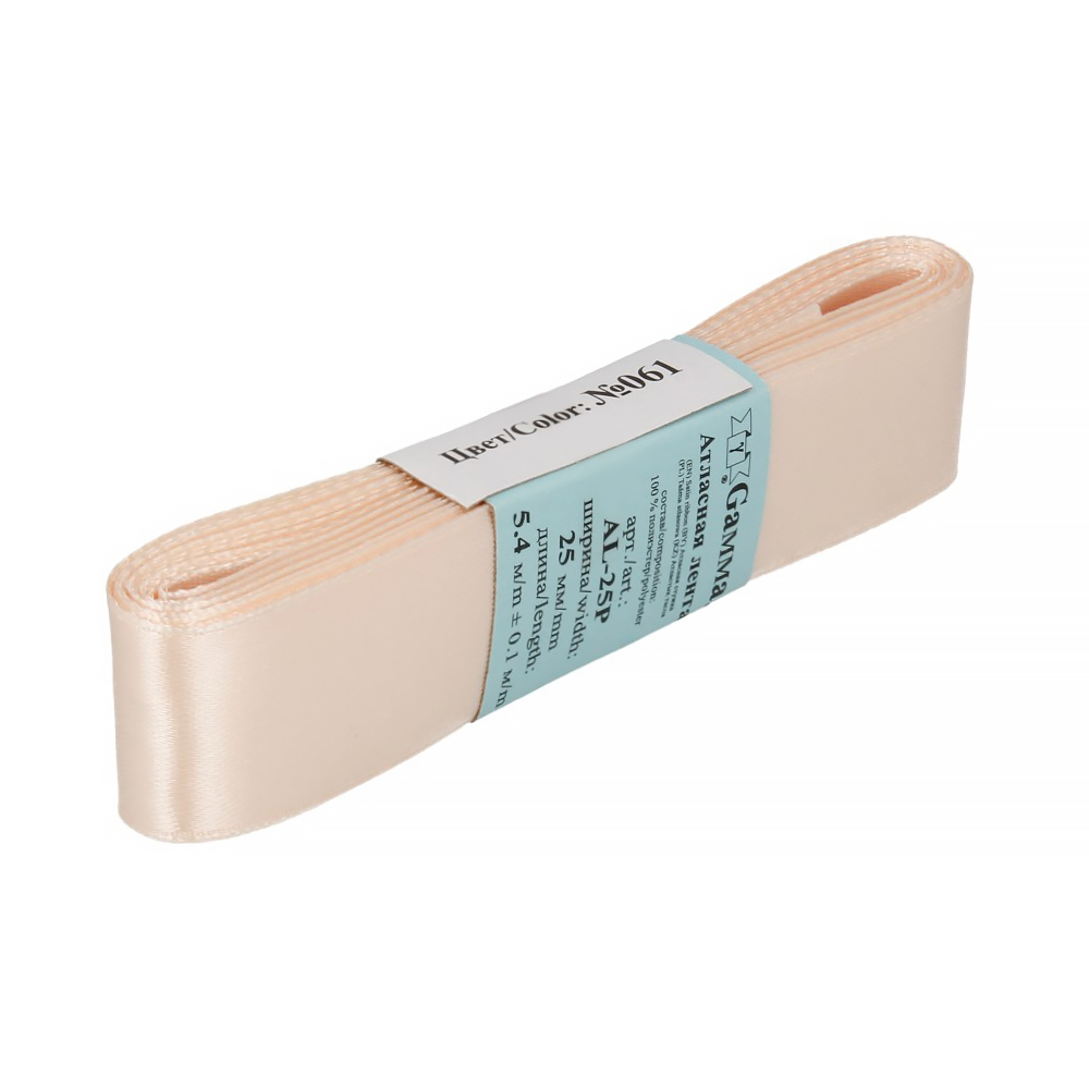 Лента атласная 1-сторонняя 25.0 мм / 5 шт по 5.4 метра, №061 св.св.бежевый, Gamma AL-25P